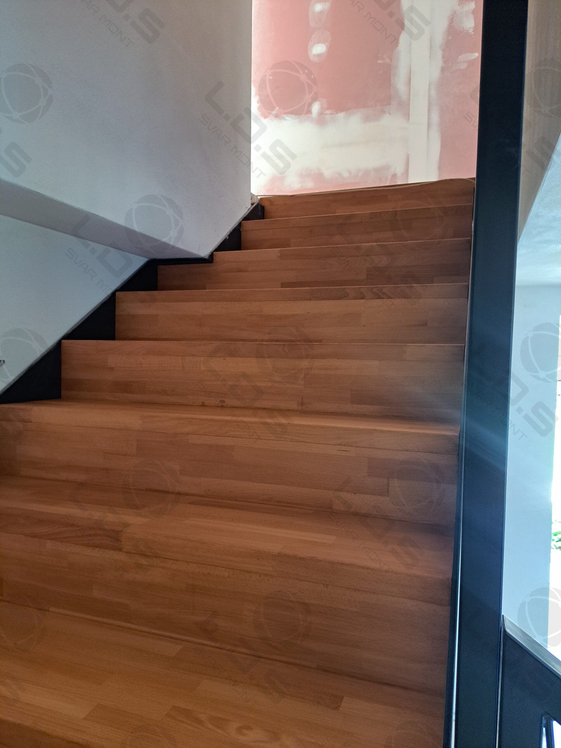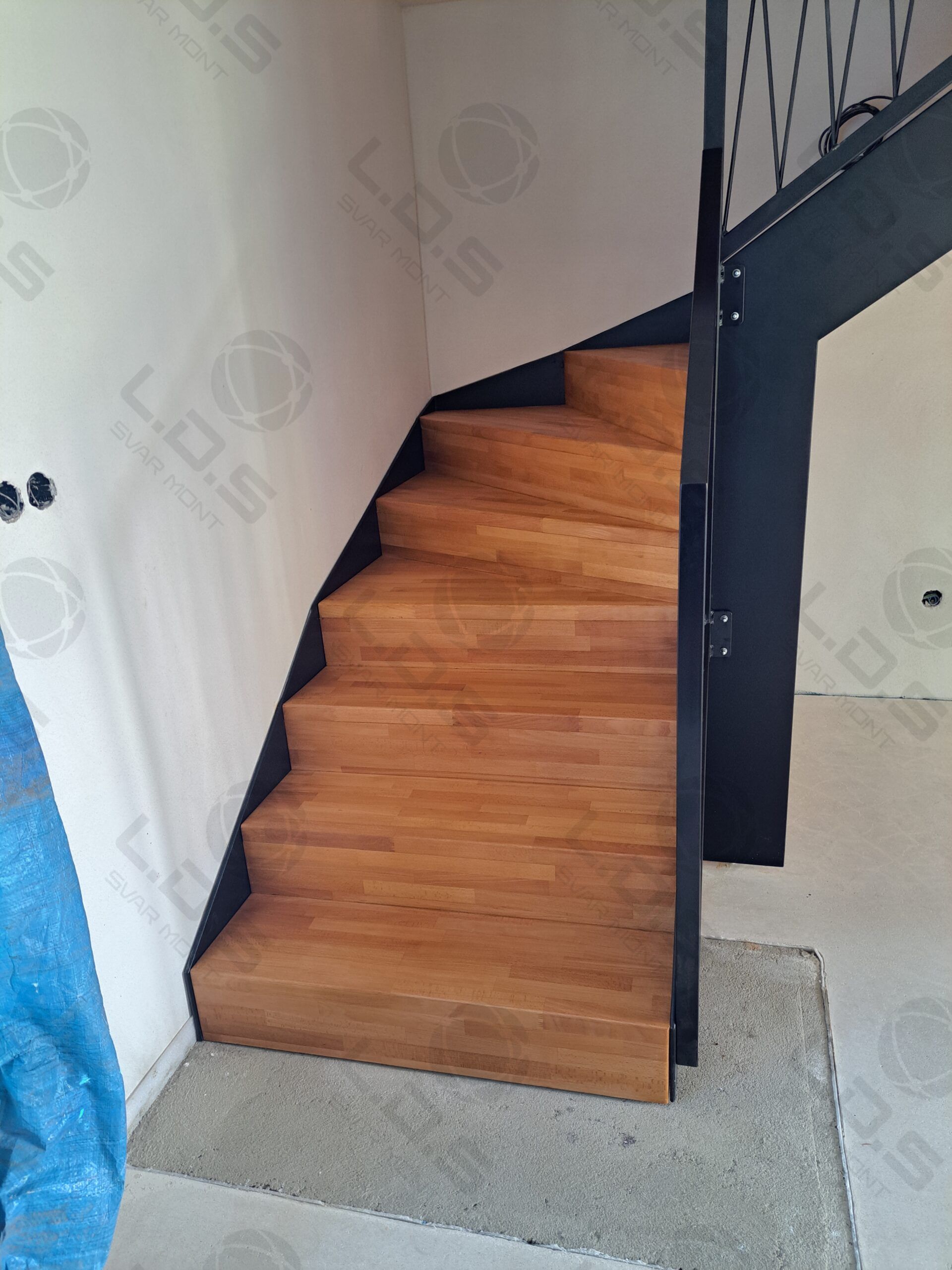 Zakázka zahrnovala kompletní výrobu, montáž schodiště se zábradlím a plnými nášlapy.
